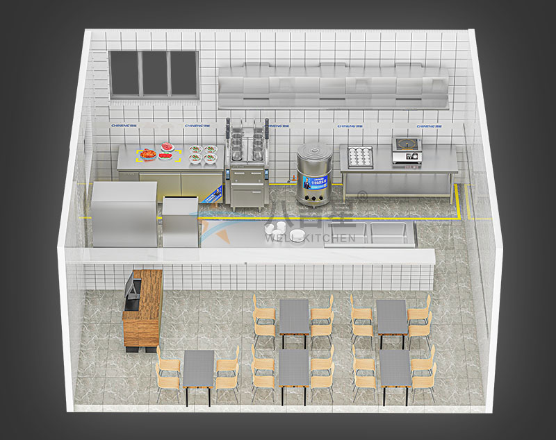 專供標準化連鎖餐飲廚房工程,針對中高端連鎖品牌,由資深商用廚房工程師根據品牌定位,裝修風格,菜品樣式,店鋪檔次等多維度進行廚房設計及設備配套方案,廚具設備可根據品牌風格進行外觀定制。